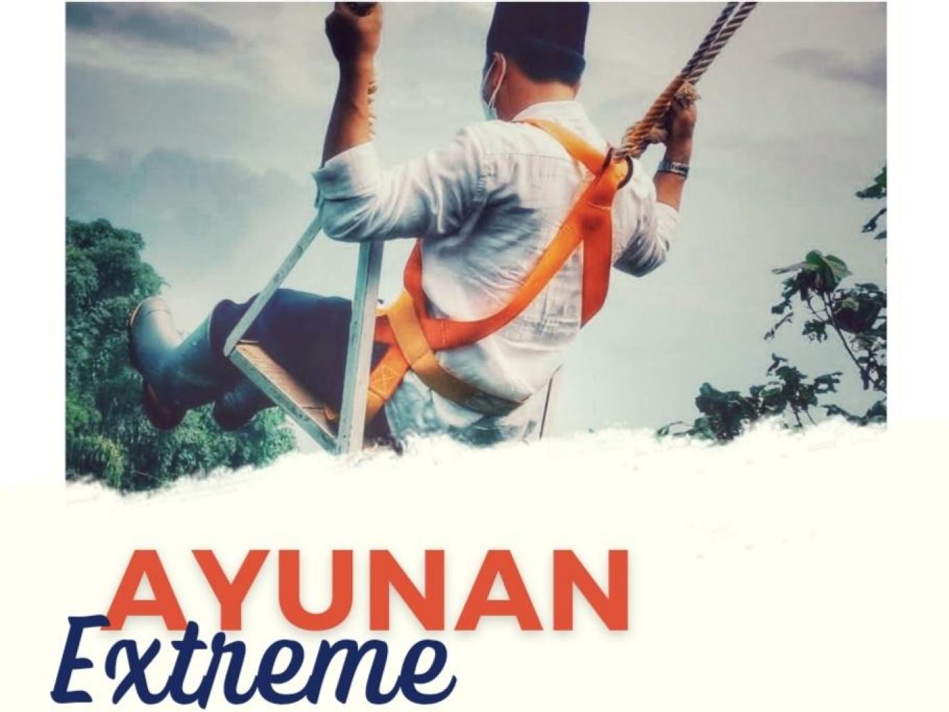 Ayunan extreem terdiri dari bangunan penopang menggunakan bambu besar yang di rangkai menjadi konstruksi untuk menahan beban ayunan, material pendukung ayunan extreem terdiri dari tali kapal yang mampu menahan berat beban lebih dari 500 kg dan terdapat tali karmatel untuk tali cadangan pengguna ayunan tersebut, dilengkapi pula dengan body harnes untuk pengguna ayunan tersebut, kesemuanya agar wisatwan yang ingin menggunakan ayunan extreem tersebut merasa aman dan nyaman.