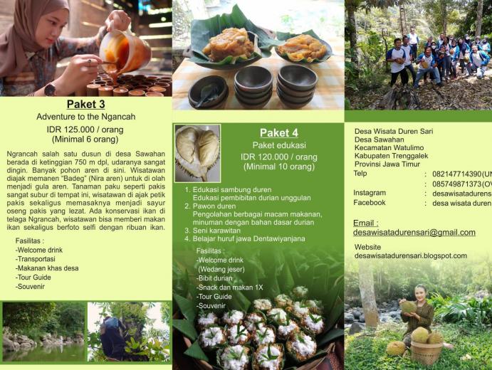 Kekuatan dan potensi utama dari desa wisata Duren Sari Sawahan yakni tetap mempertahankan dan melestarikan kearifan lokal yang ada di masyarakat desa dengan mengemasnya menjadi sebuah PAKET WISATA baik Paket Wisata Alam, Wisata Edukasi, Wisata Budaya, Wisata Kuliner, Outbound, serta Paket Wisata Live In.